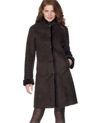 Jones New York Long Faux-Shearling Coat- Get the great look and feel of a shearling with this chic Jones New York coat.