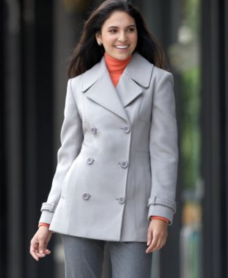 Kenneth Cole Refined Wool Pea Coat-The classic peacoat, with a tailored fit, feminine details and double- breasted style.