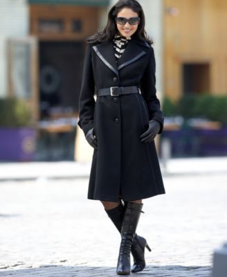 Perry Ellis Textured Belted Coat- Leather trim and a leather belt lend this chic wool coat a luxe touch.