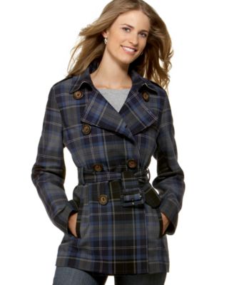Tommy Hilfiger Tartan Trench Coat- Gear up for fall in this short, plaid trench coat from Tommy Hilfiger.